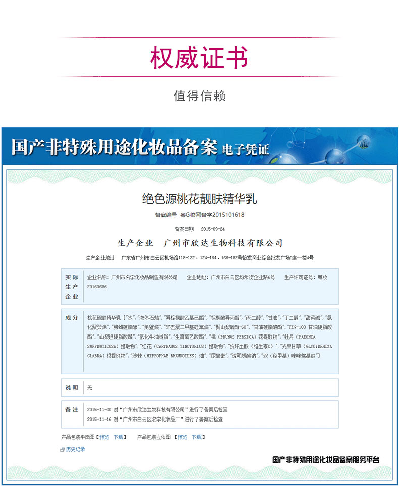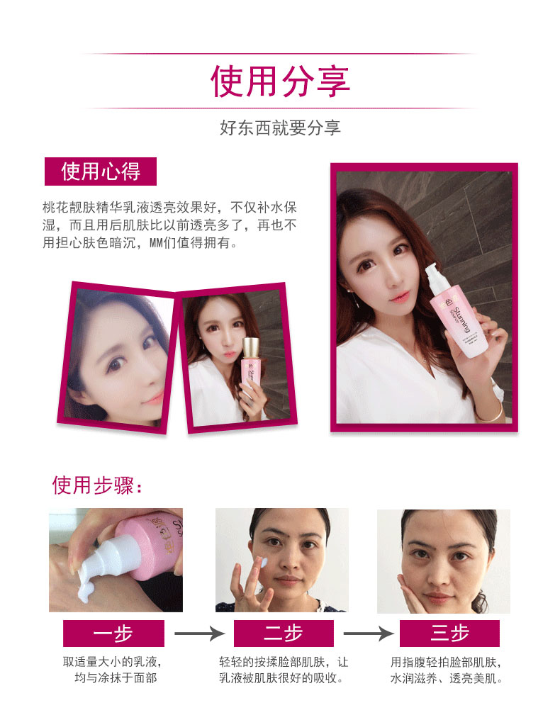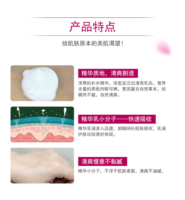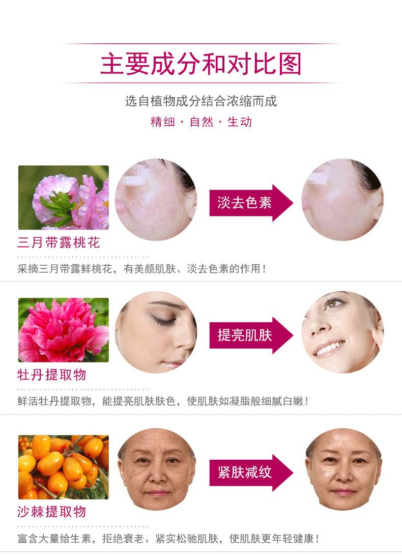 產品作用:補水潤膚、平衡水油、提亮肌膚、緊膚減紋。